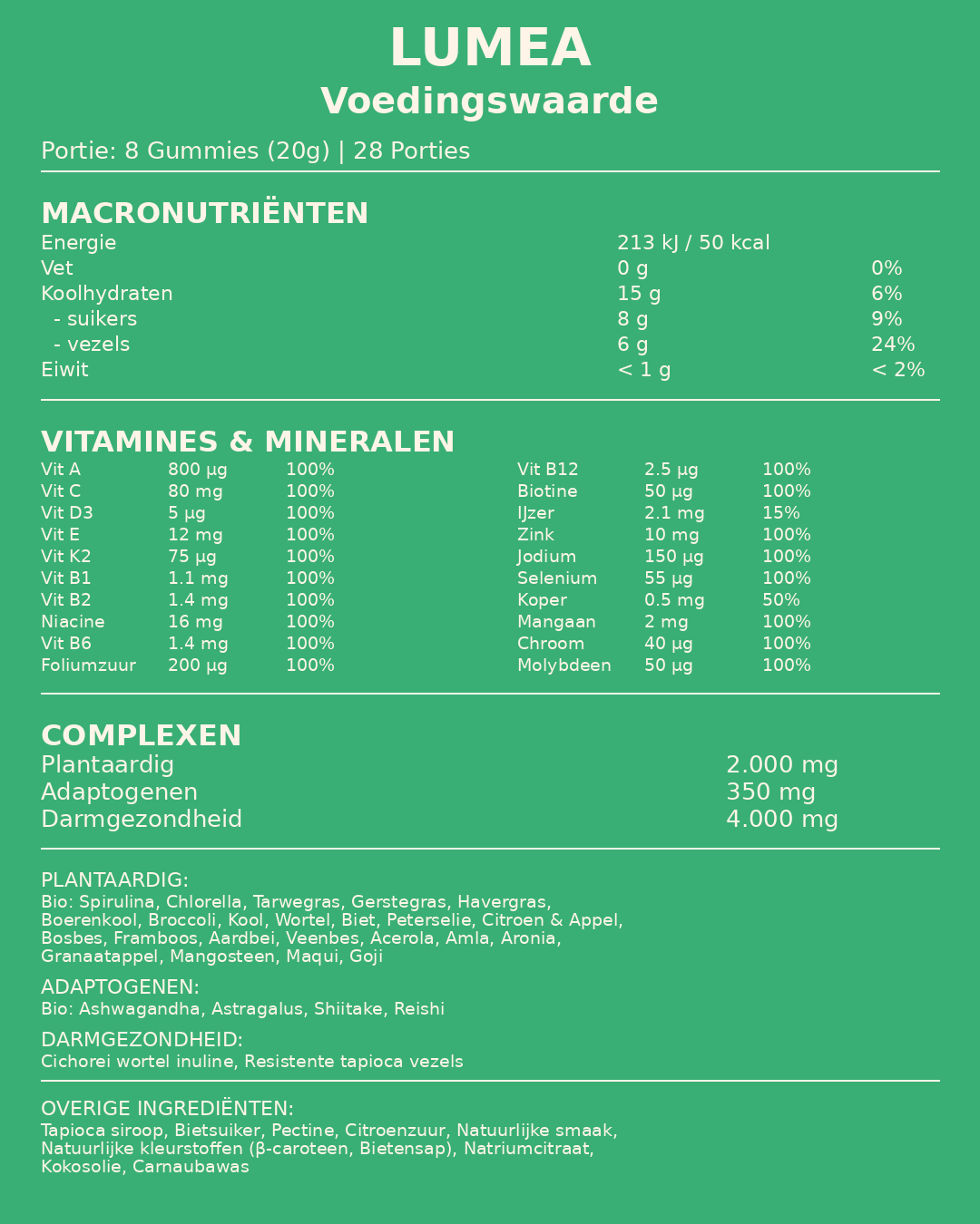 Let op: Dit product is een voedingssupplement. Een voedingssupplement is geen vervanging van een gevarieerde en evenwichtige voeding en een gezonde levensstijl.